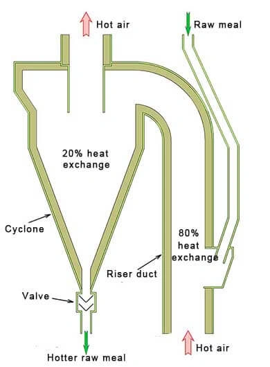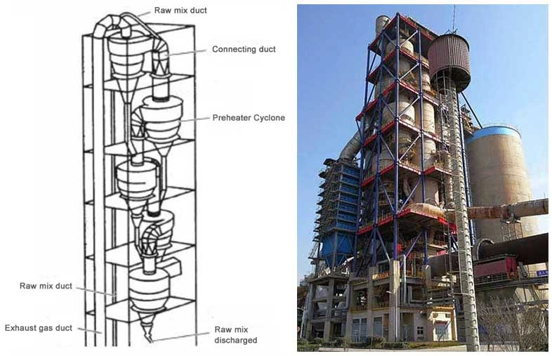 Циклонный подогреватель — вертикальная многоступенчатая башня, в которой реализуется интенсивный противоточный теплообмен между восходящим потоком высокотемпературных газов и опускающимся потоком сырьевой муки, находящейся в состоянии взвеси. Именно подобная организация процесса обеспечивает чрезвычайно высокую скорость передачи тепла и равномерный прогрев материала на всех стадиях. Конструкция состоит из таких ключевых элементов: