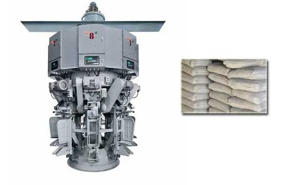 Ротоупаковщик цемента — ротационная машина с центральным силосом и несколькими штуцерами, расположенными по окружности. Ротор вращается вокруг вертикальной оси, а мешки надеваются на штуцеры вручную. Далее происходит автоматическое наполнение, взвешивание и сброс готового мешка. Конструкция включает прочный корпус, систему подачи материала, высокоскоростные вертушки внутри штуцеров, механизм точного взвешивания и автоматизированную систему управления.