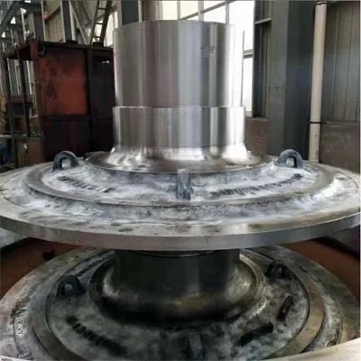 Цапфа мельницы — это крупногабаритная литая деталь сложной конфигурации. Она состоит из цилиндрического тела с утолщенными стенками, фланцевой части для соединения с торцевой крышкой барабана и опорных шеек, которые контактируют с подшипниками скольжения или качения. Внутренний канал цапфы обеспечивает беспрепятственное перемещение материала — как при загрузке, так и при разгрузке. Конструкция предусматривает зоны концентрации напряжений в местах перехода от шейки к фланцу и к цилиндру. Поэтому при производстве применяют меры по минимизации дефектов литья.